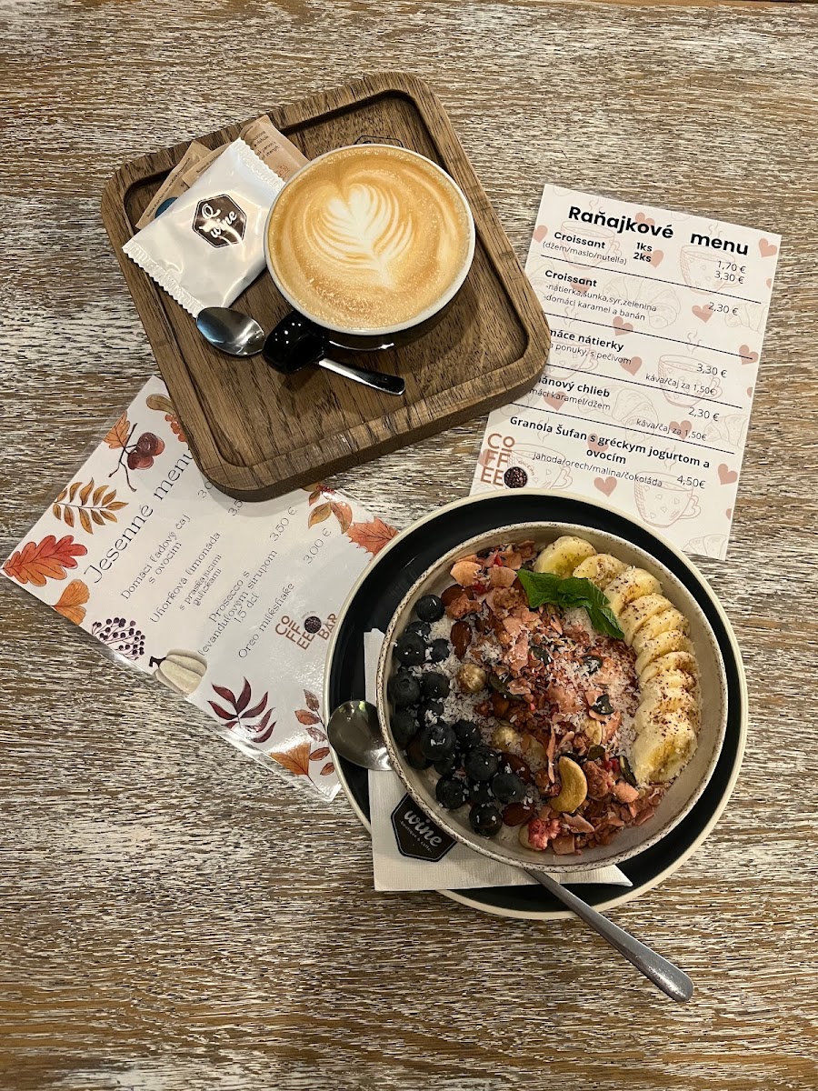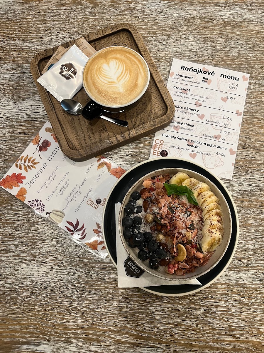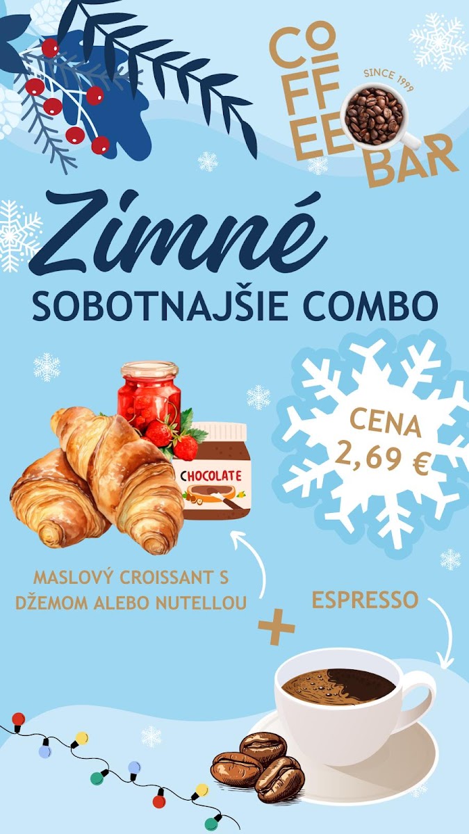 The menu at Q Coffe Bar in Liptovský Mikuláš offers a selection centered on coffee and complementary beverages suitable for coffee breaks and light meals. Visitors can expect a variety of hot drinks including specialty coffees such as the highlighted Blue Mauritius Gold and Krémeš A Lungo. Alongside beverages, light food options like croissants and other breakfast items are available, providing convenient choices for morning or casual snacking.