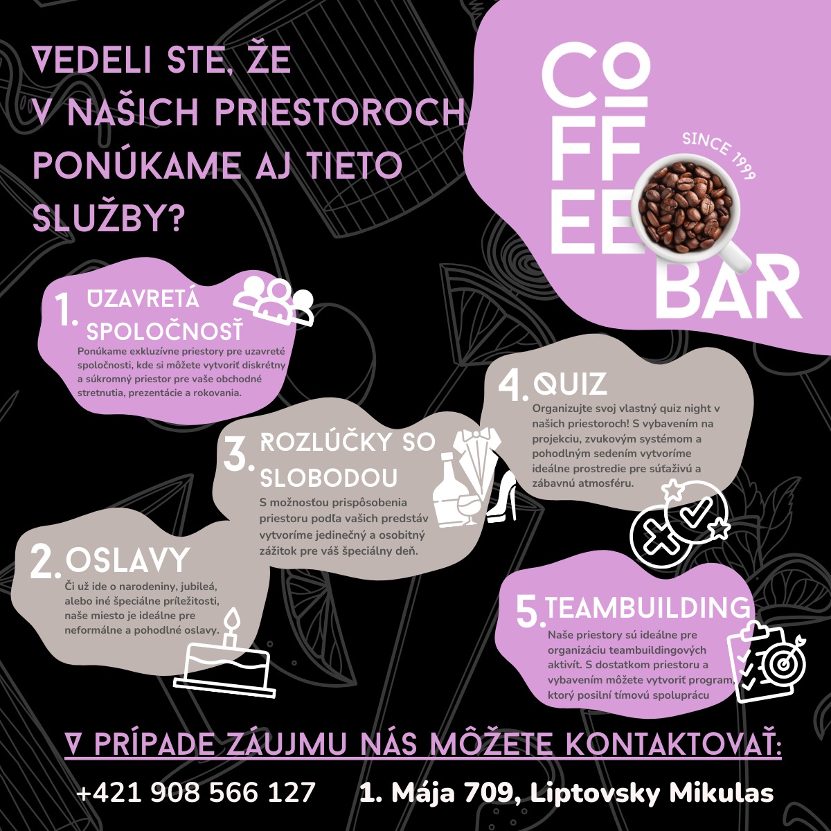 Q Coffe Bar, kaviareň, bar Liptovský Mikuláš Menu